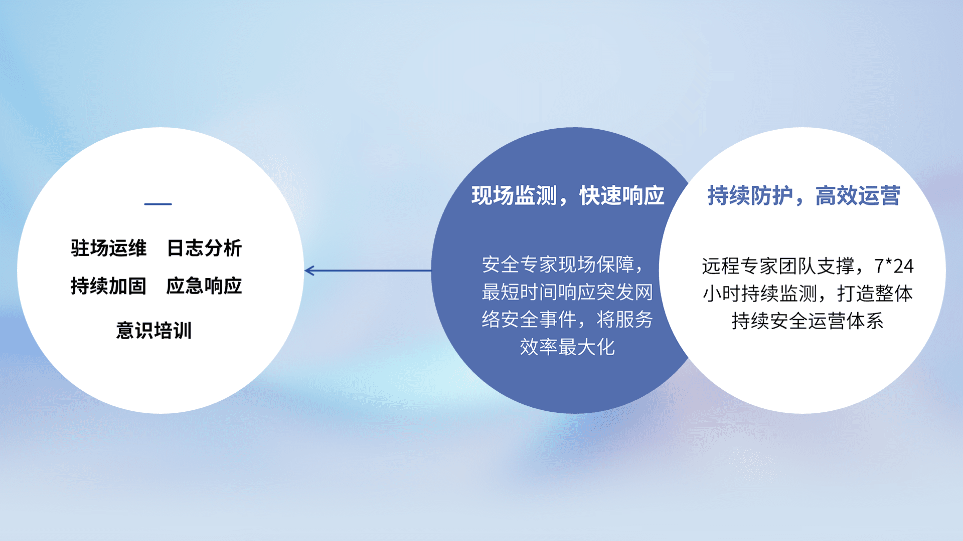 针对客户行业特性,,提供专属的一站式安全管理服务,,,,帮助客户全面感知网络空间威胁,,,,通过安全专家的线上、、、、线下防护支持,,实现风险闭环,,将安全保障常态化,,为客户打造常态化安全运维运营服务。。。